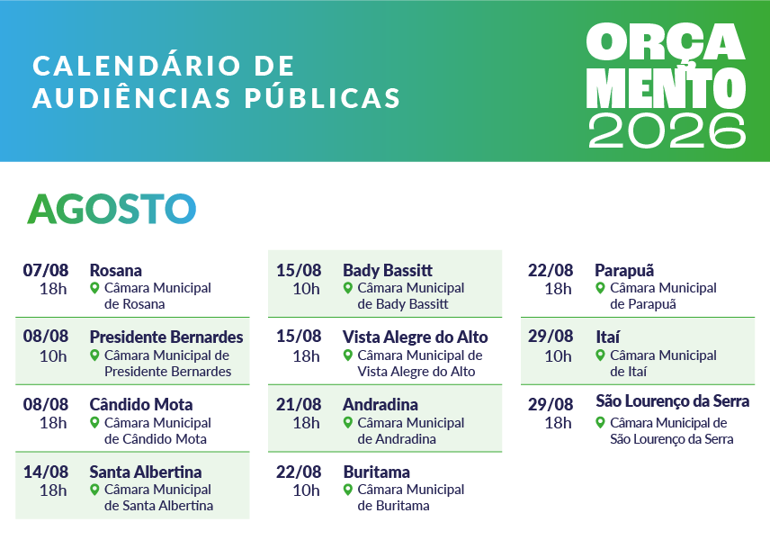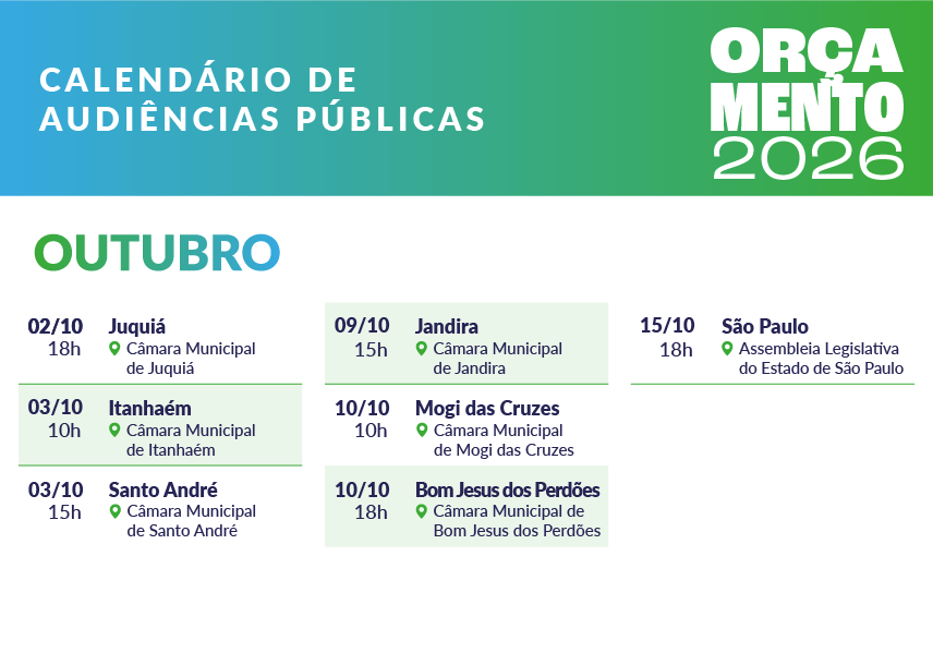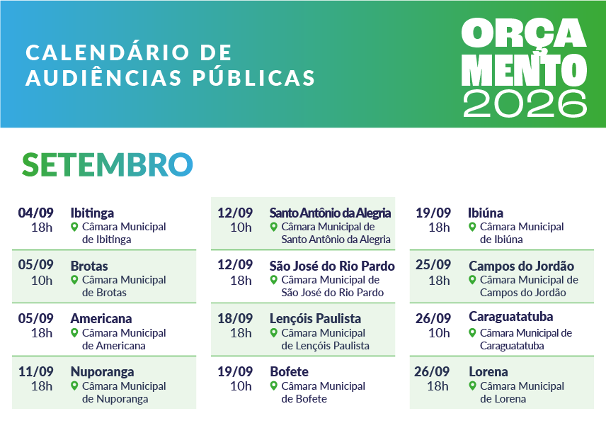 Confira abaixo o calendário das audiências públicas do Orçamento para 2026: