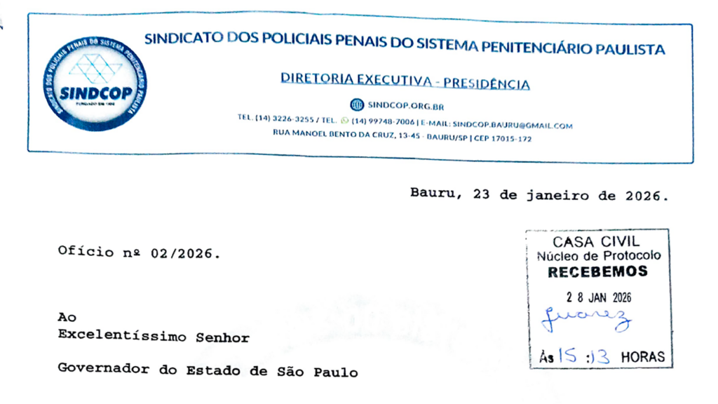 A proposta de autoria da deputada federal Luciene Cavalcante foi sancionada pelo presidente Lula e descongelou 583 dias do período de pandemia que não foram contabilizados para direitos do funcionalismo público. Carlos Vítolo Da Redação – SINDCOP O Sindcop protocolou um ofício junto ao governador de São Paulo Tarcísio de Freitas, requerendo a adoção das providências administrativas e legislativas visando o pagamento retroativo dos adicionais por tempo de serviço e demais vantagens funcionais aos servidores do sistema penitenciário estadual. No documento, o Sindcop cobra do governo medidas cabíveis e envio de projeto de lei à Assembleia Legislativa que autorize expressamente o pagamento retroativo dos adicionais e vantagens às categorias abrangidas pela da Lei Complementar 226/2026. A lei foi sancionada pelo presidente Luiz Inácio Lula da Silva no último dia 12 e recompõe o tempo de serviço ao funcionalismo público brasileiro, que foi congelado durante o período da pandemia da Covid-19. A sanção da lei encerrou o congelamento de 583 dias na contagem do tempo de serviço dos servidores. O projeto foi de autoria da deputada federal Luciene Cavalcante (Psol-SP) e ficou conhecida como “Lei Descongela”. Os pagamentos são referentes ao período entre 28 de maio de 2020 e 31 de dezembro de 2021. A lei destaca que os benefícios serão pagos desde que o ente federativo tenha respeitada sua disponibilidade orçamentária própria. No ofício protocolado ao governador, o Sindcop destaca que “a medida ora pleiteada confere efetividade à norma vigente, reforça segurança jurídica e contribui para a redução da judicialização de demandas envolvendo direitos já reconhecidos pelo próprio Estado”. Assim que houver resposta do governo publicaremos nova reportagem sobre o tema.